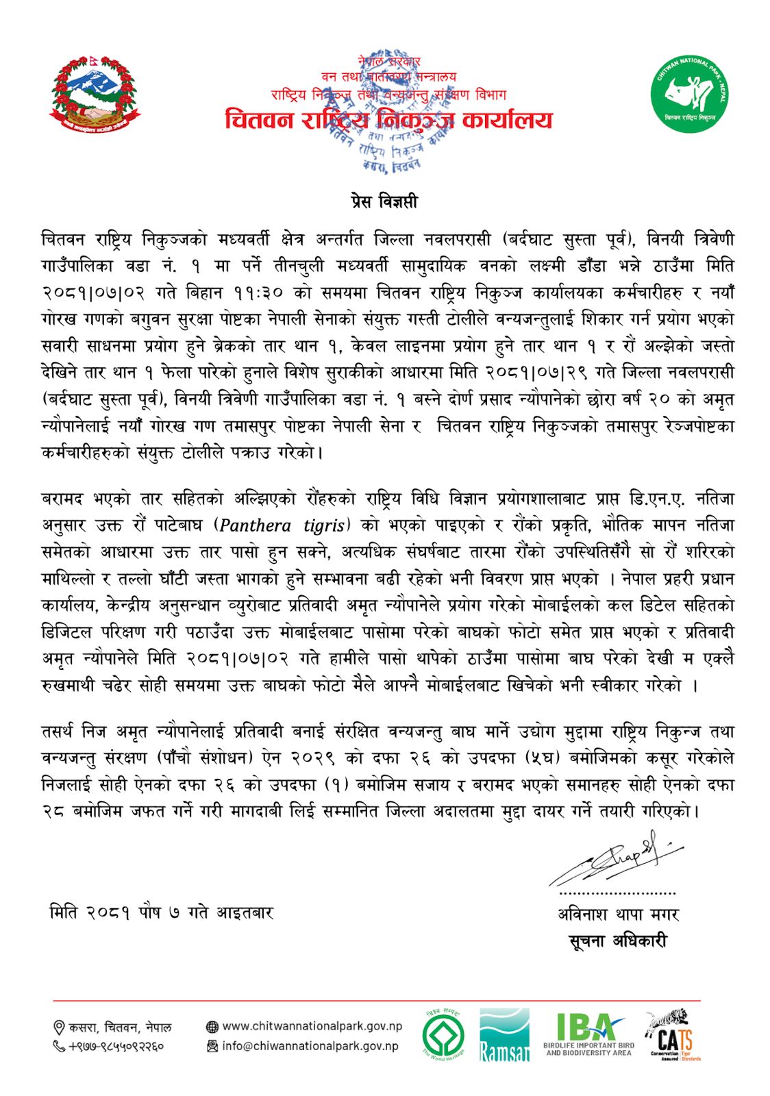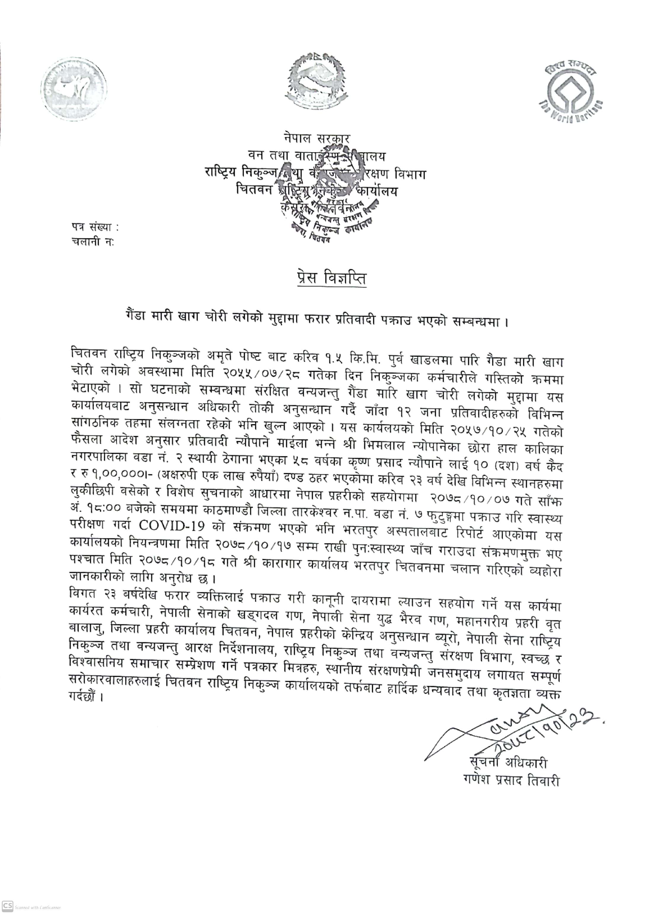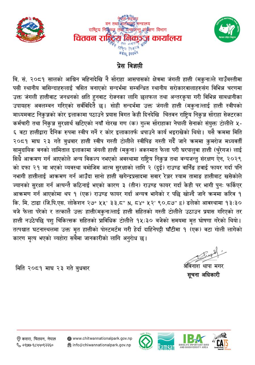 संरक्षणको पछिल्लो अवस्था बारे प्रेस बिज्ञप्ति